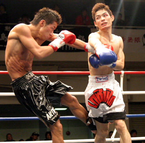 「いつも通り1ラウンド目から倒すつもりだった」と試合後に語った長島は、試合開始直後からハイスパートでパンチの嵐を古川に浴びせ、いきなりダウンを奪 う。古川は立ち上がったものの足元がおぼつかず、左目が腫れてふさがれた状態となる。試合続行となるものの、勝負と見た長島はそのまま猛ラッシュ! 的確 かつ高速のパンチ攻撃の前に古川はなすすべなく、レフェリーが試合をストップした。わずか64秒のTKO決着に会場は総立ちとなり、長島はコーナーポスト に登って歓喜の雄たけび。9日に初日を迎えた大相撲では土俵に座布団が投げ込まれないよう工夫が施されたが、長島が勝利を決めるとファンは応援の小道具と して持っていたネギをリング上に放り投げて祝福した。